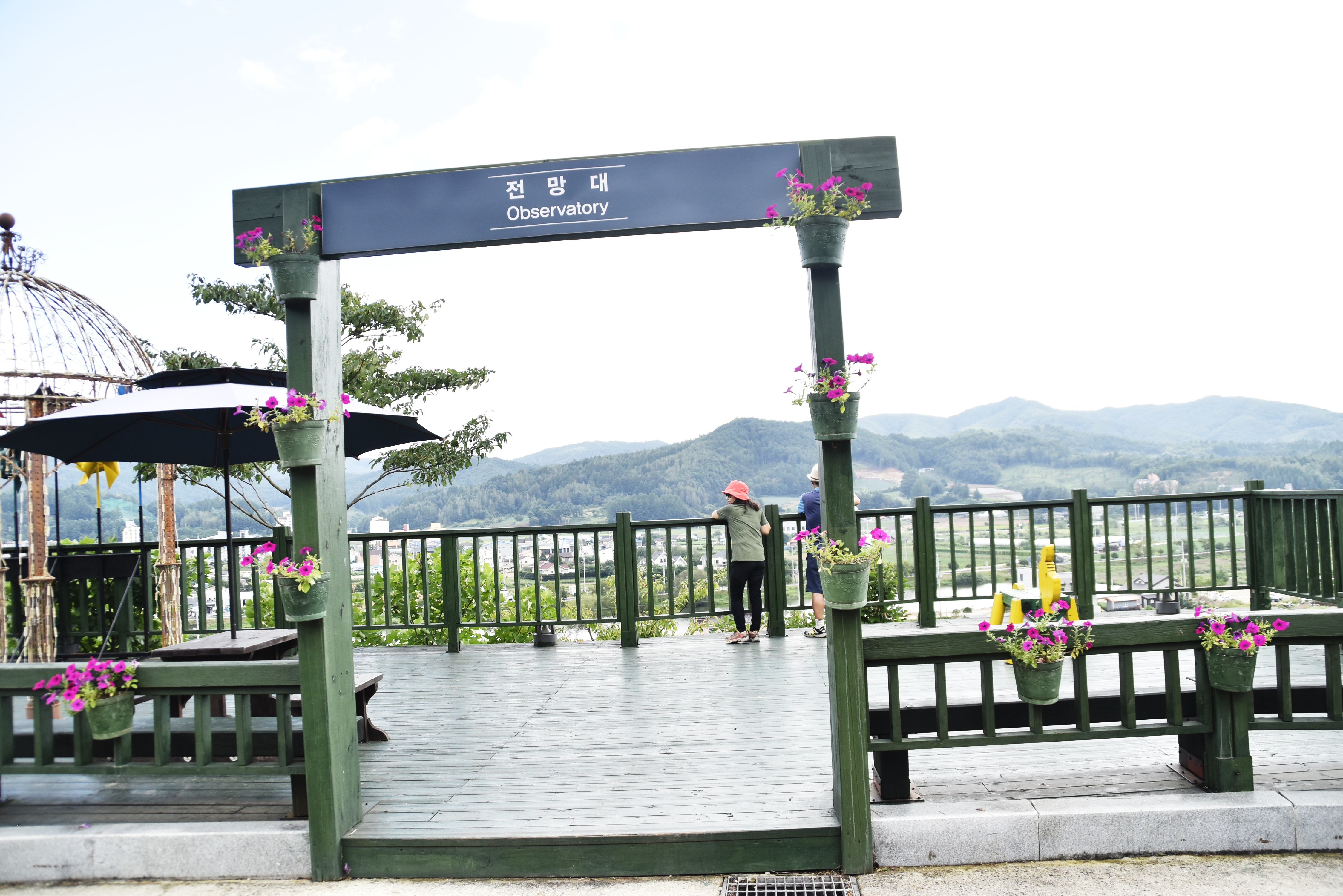 전망대가 생겼다. 전만대 아래에 메밀꽃밭 포토존이 보인다. 하트 모양도 보기 좋지만 제주도 유체꽃밭처럼 그냥 광활하게(?) 최대한 자연스럽게 두었으면 어땠을까하는 아쉬움이 있다.