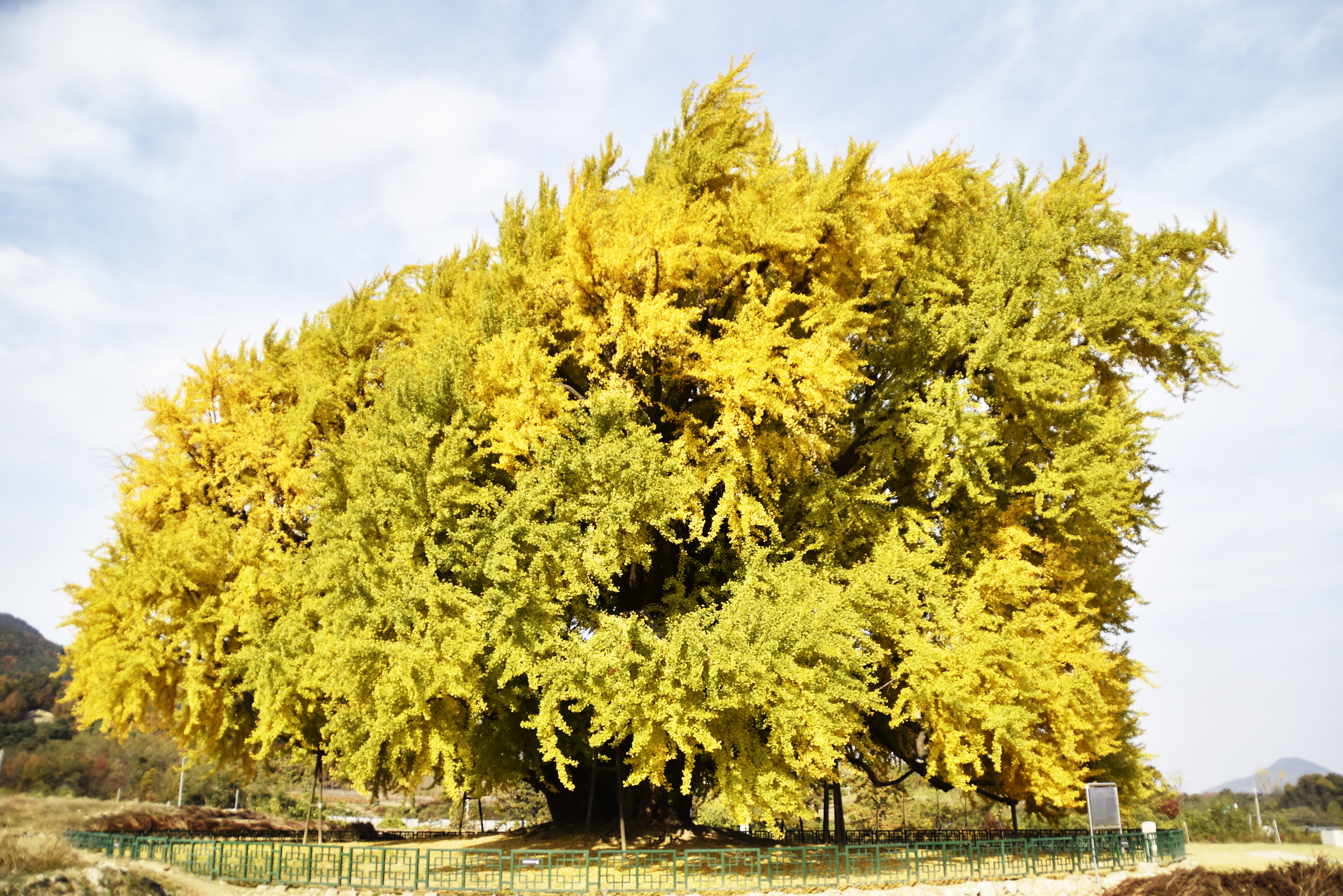 마을 뒷쪽에 있고 얼마 전까지도 크게 관심을 모으지 못했으나 최근 복원작업이 순조롭게 끝나고 나무도 다시 생기를 되찾으면서 많은 사람들이 찾는 명소로 자리 잡았다. 보통 11월 첫째주 쯤 (11월 3일 ~ 10일) 단풍이이 절정에 든다. 비가 오는 날엔 일제히 단풍잎이 떨어지기 때문에 노란색의 웅장한 자태를 볼 수 있는 시간이 짧아진다. 올해는 예년보다 3, 4일 늦어졌다. 단풍을 볼 수 있는 시간이 짧아 사진을 찍기 위해 멀리서 매일 아침 달려오는 작가들도 늘어나고 있다.