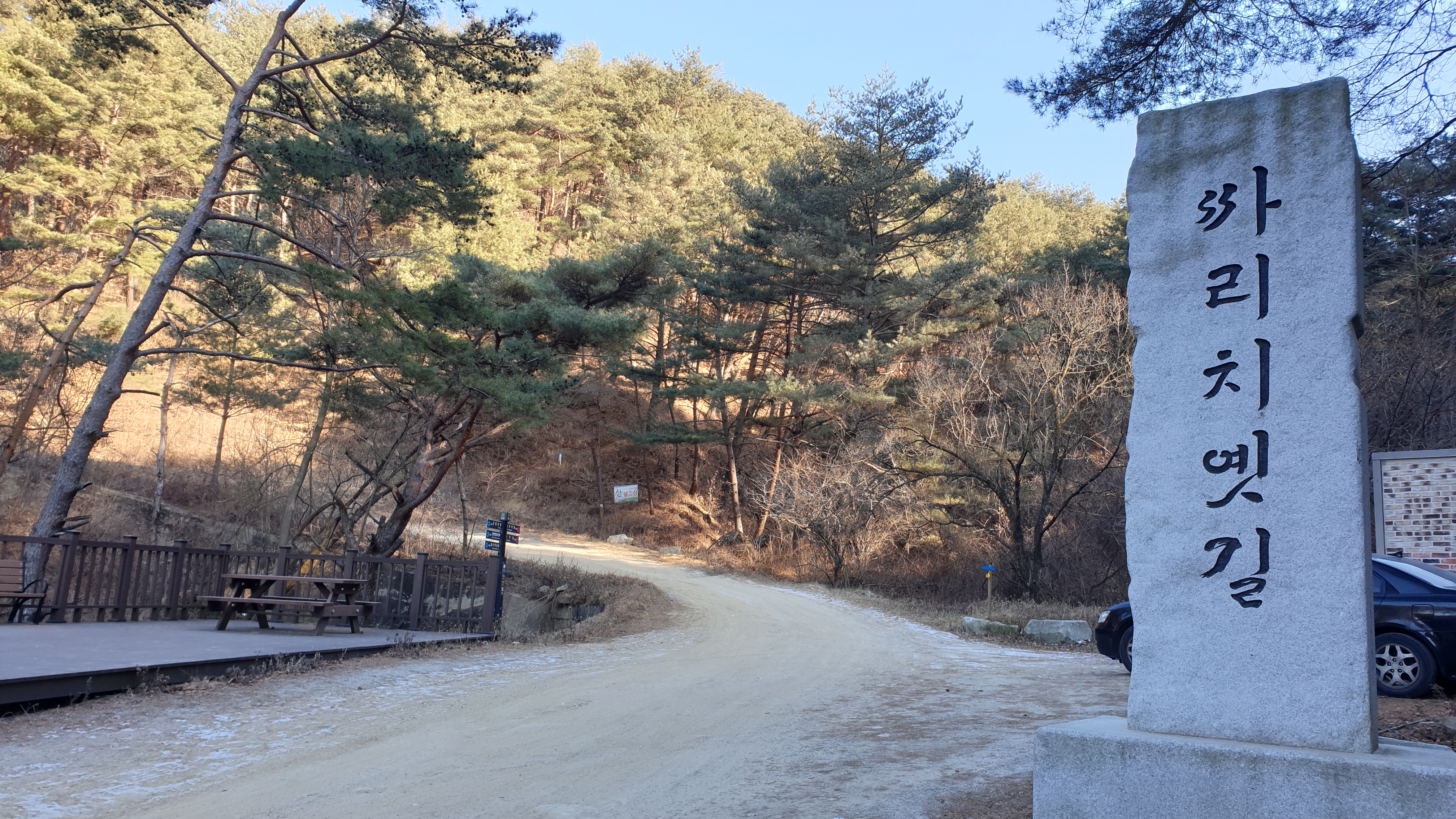 아스팔트 포장이 끝나도 계속 비포장 도로 따라 올라가다 보면 표지석과 화장실이 있습니다. 이곳에 차를 주차 할 수 있습니다.