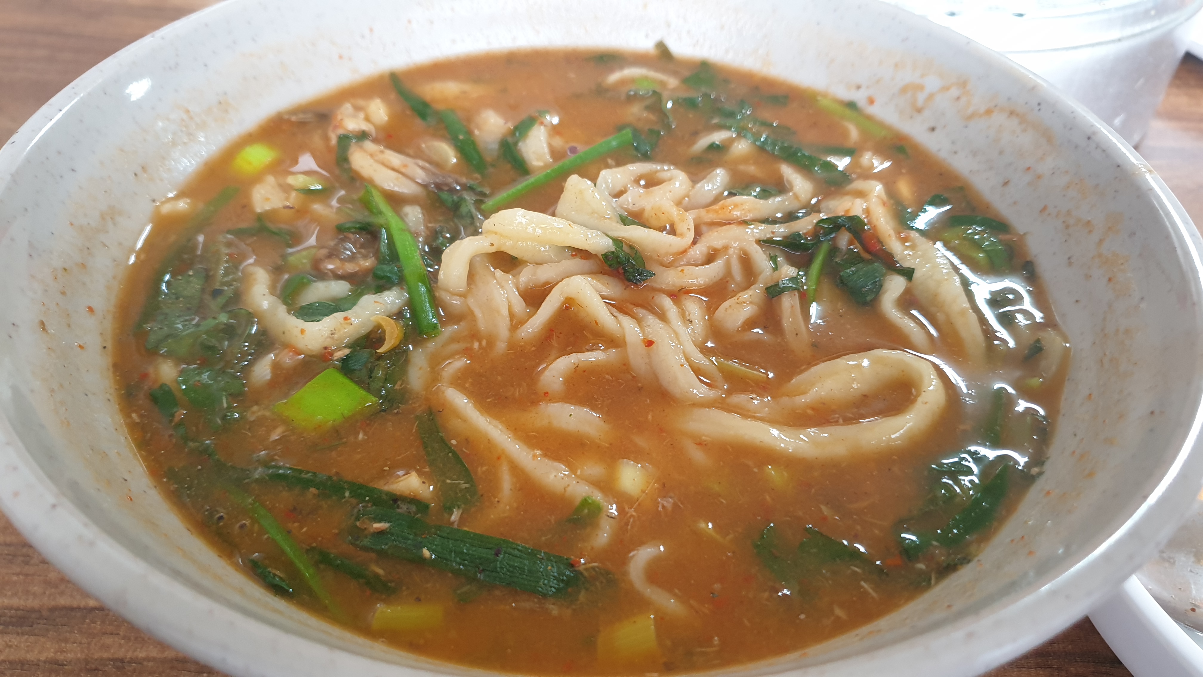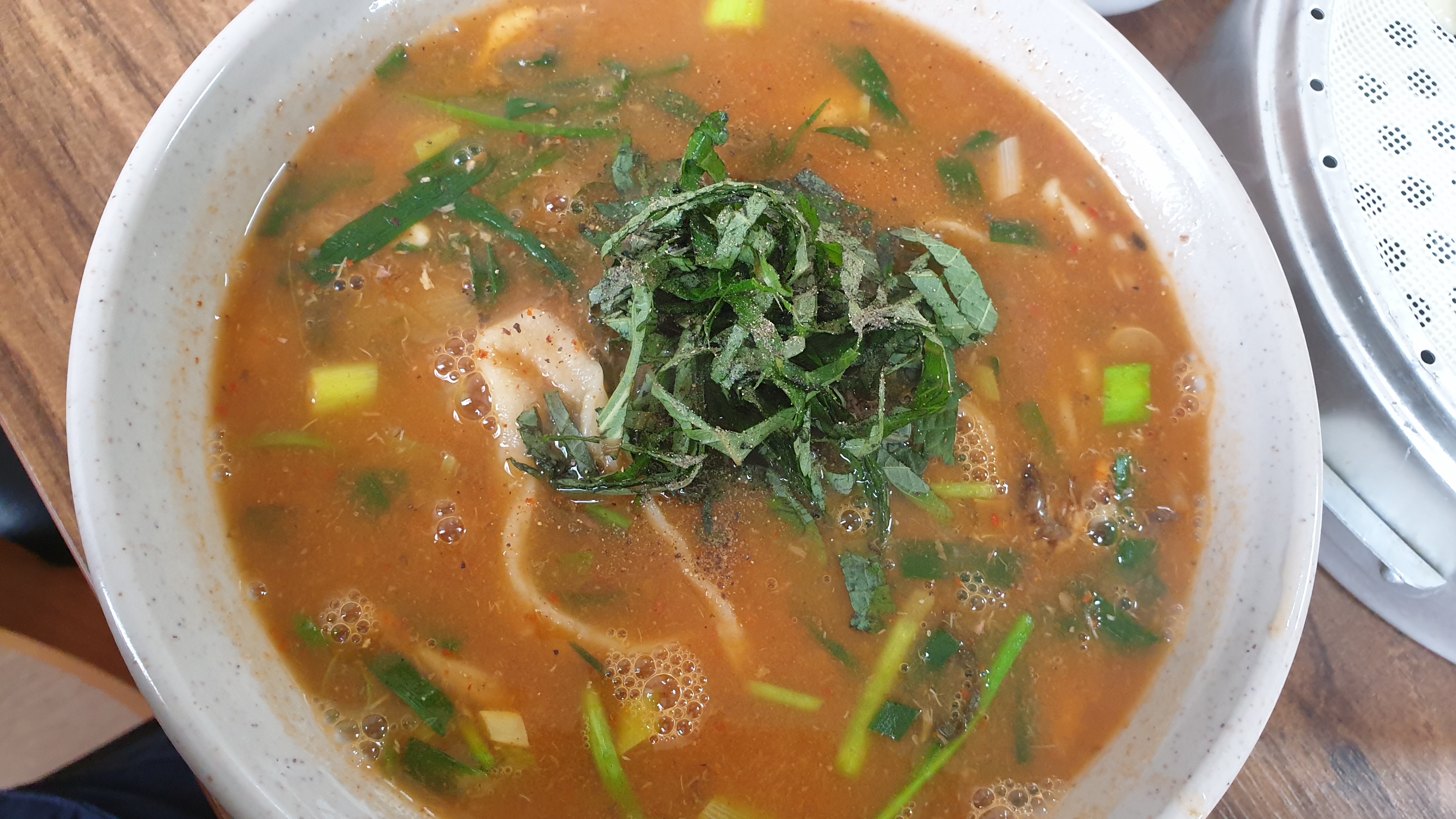 추어탕에 칼구수를 넣은 건데 국수는 손으로 직접 칼질해서 뽑은 거 같습니다.