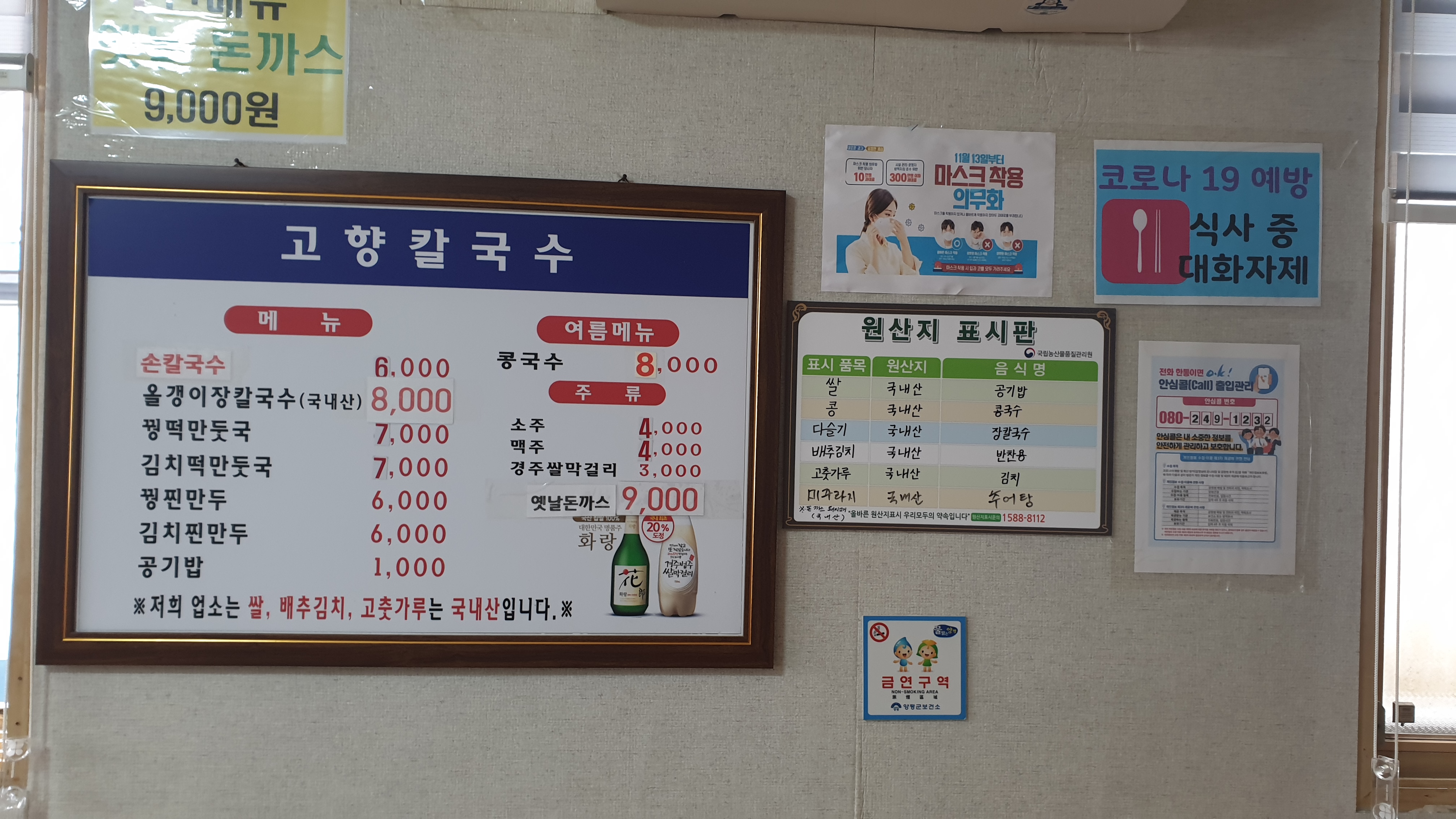 메뉴판이 오래 되서 추어칼국수는 보이지 않습니다.