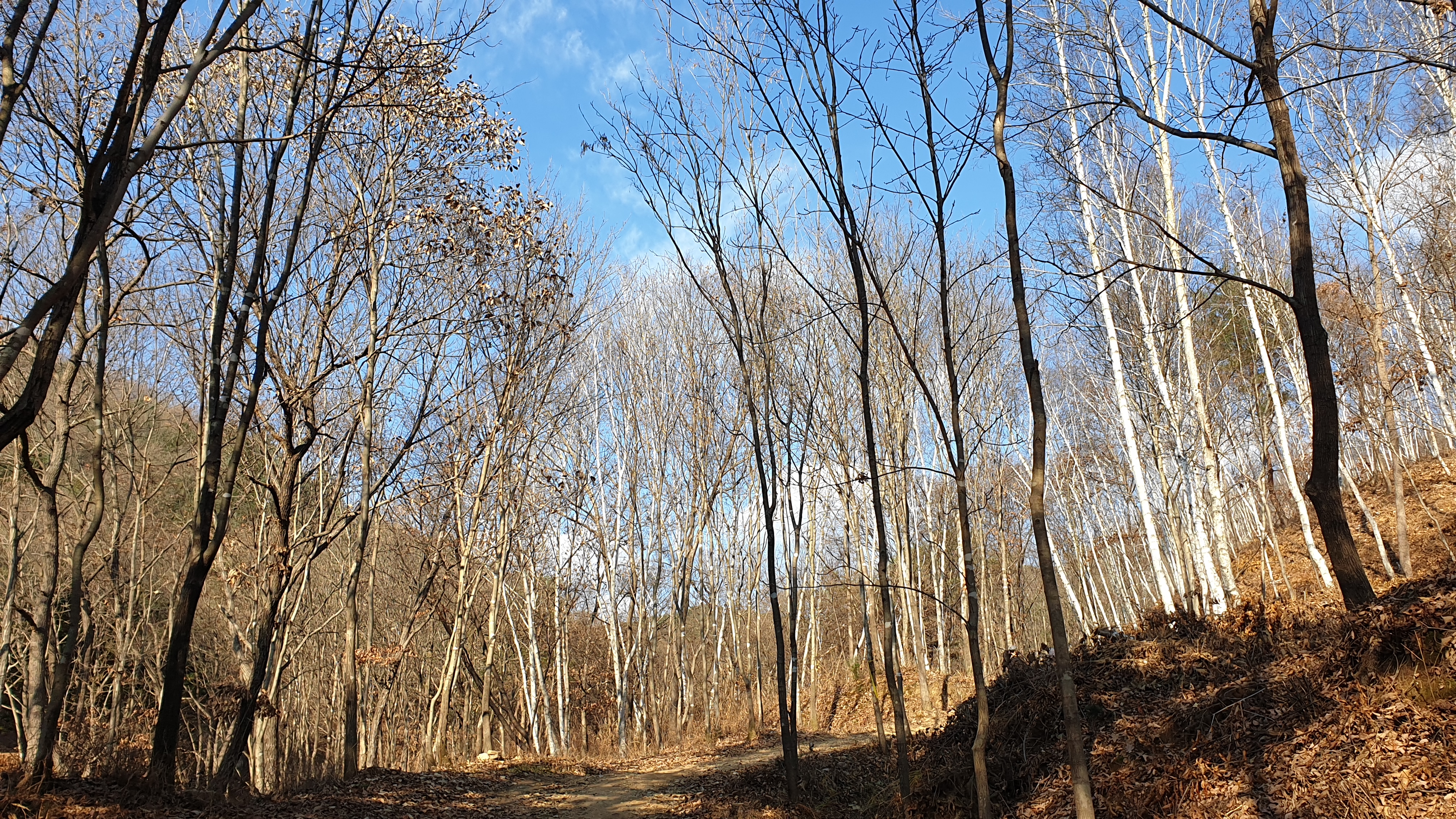 자작나무 군락지가 길게 펼쳐져 있습니다.