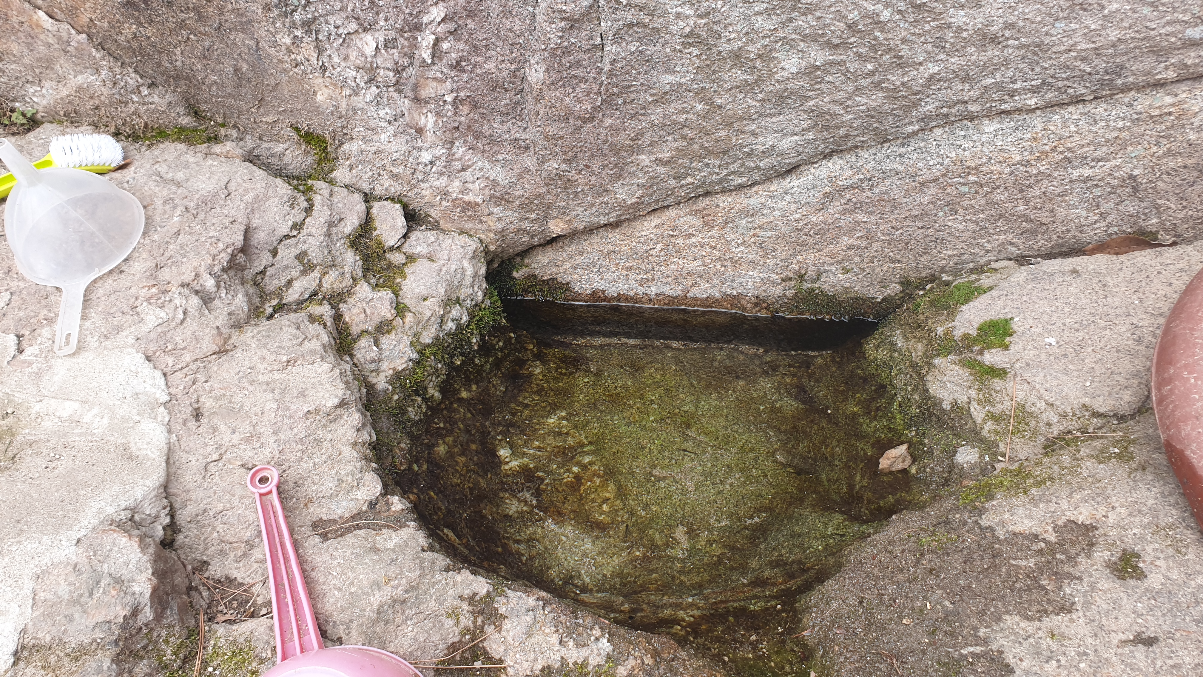 샘물은 맑다. 그런데 바가지가 오래 됐으니 개인용 물컵을 챙겨가는 것을 추천한다.