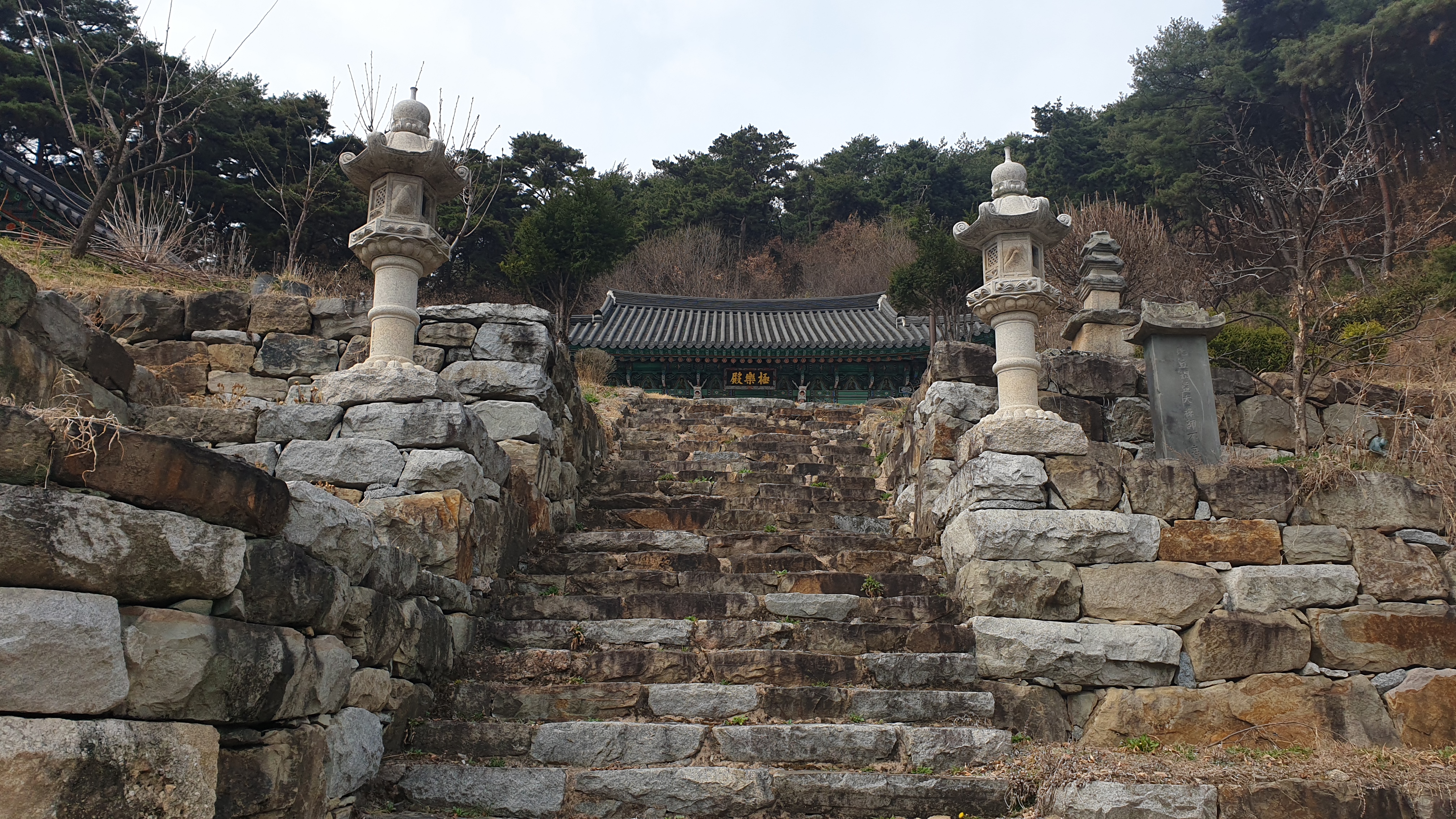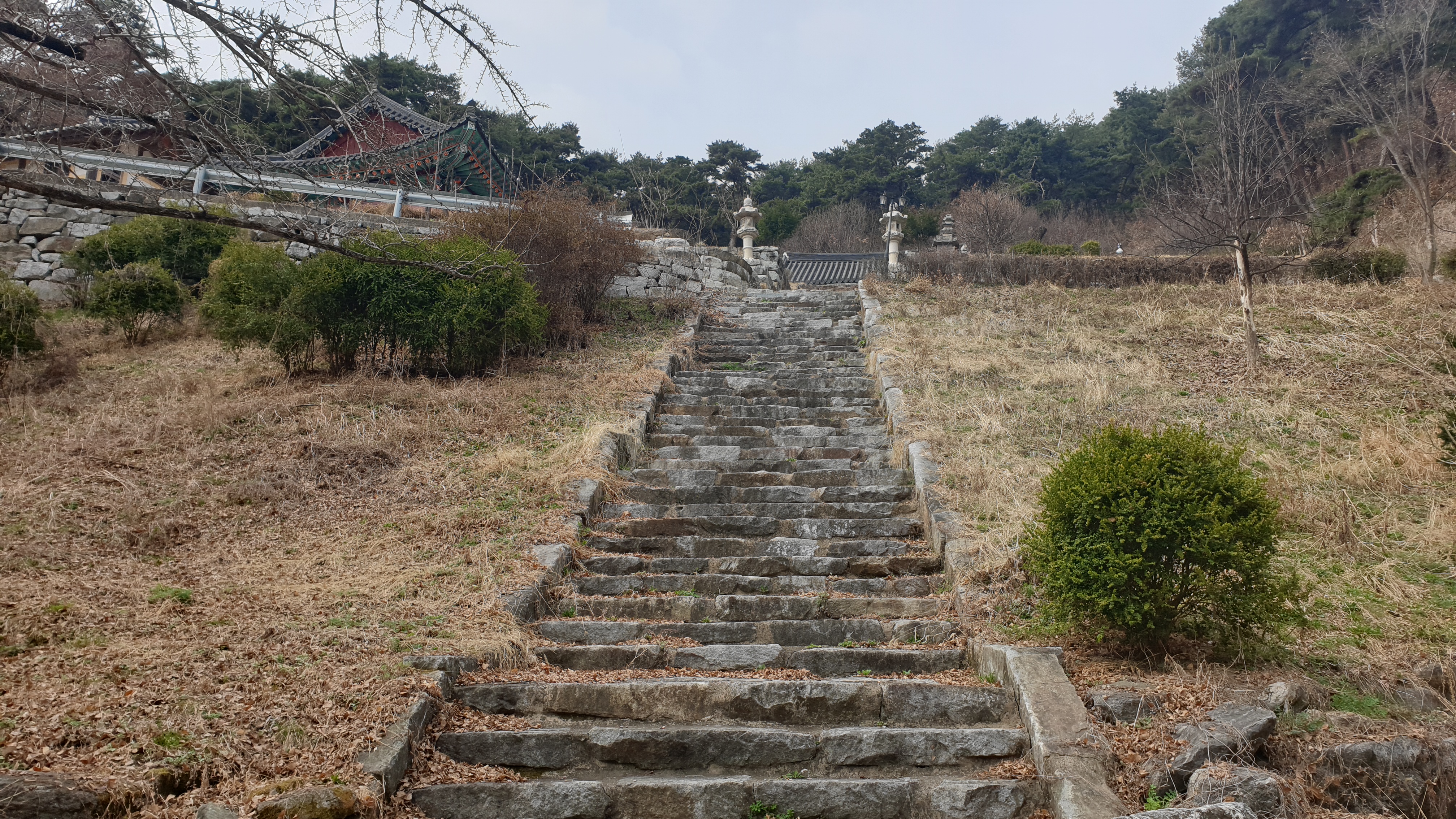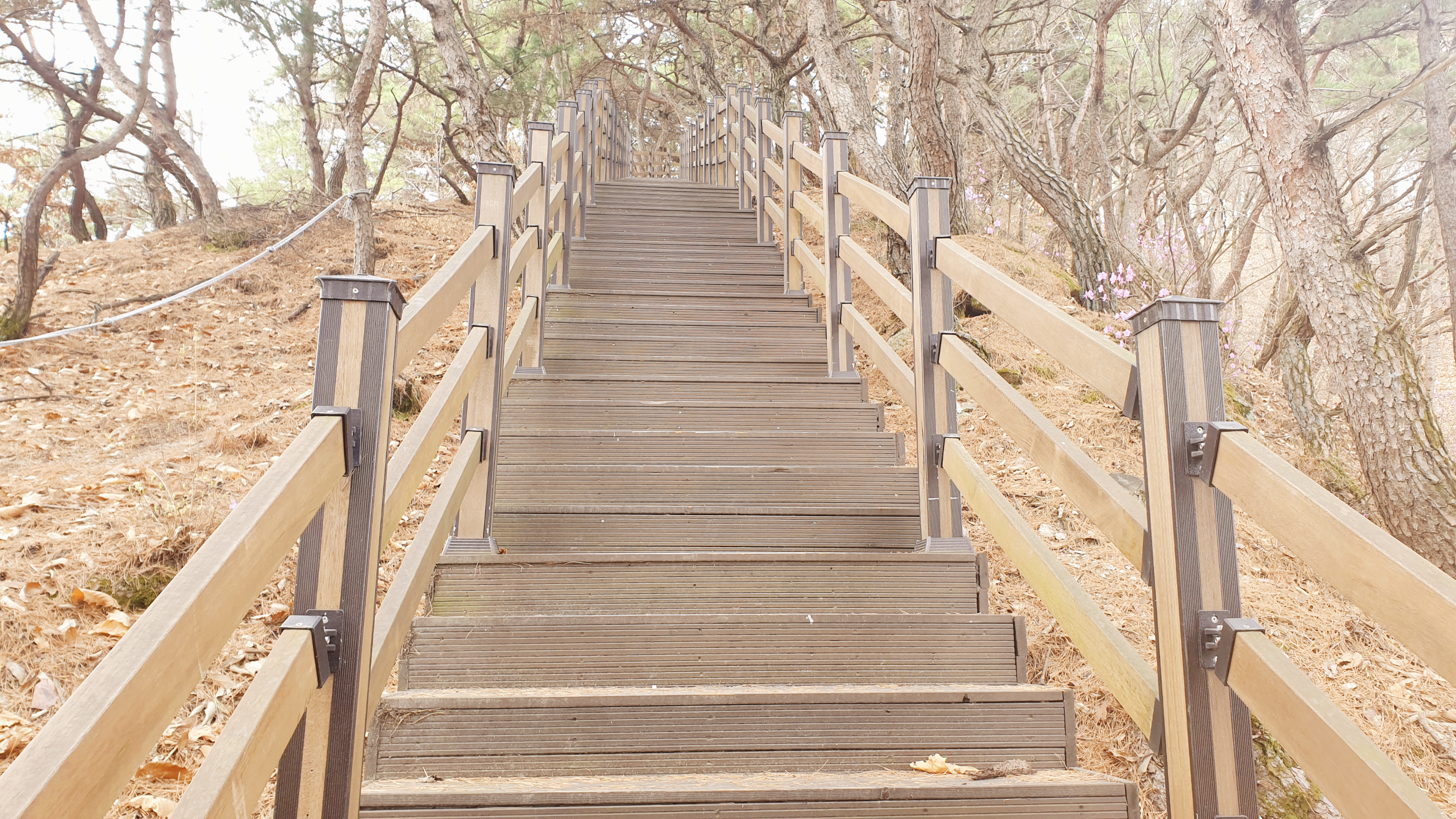 정상까지 계단이 두 개 있다. 첫번째 계단. 산은 낮은데 제법 경사가 있다.