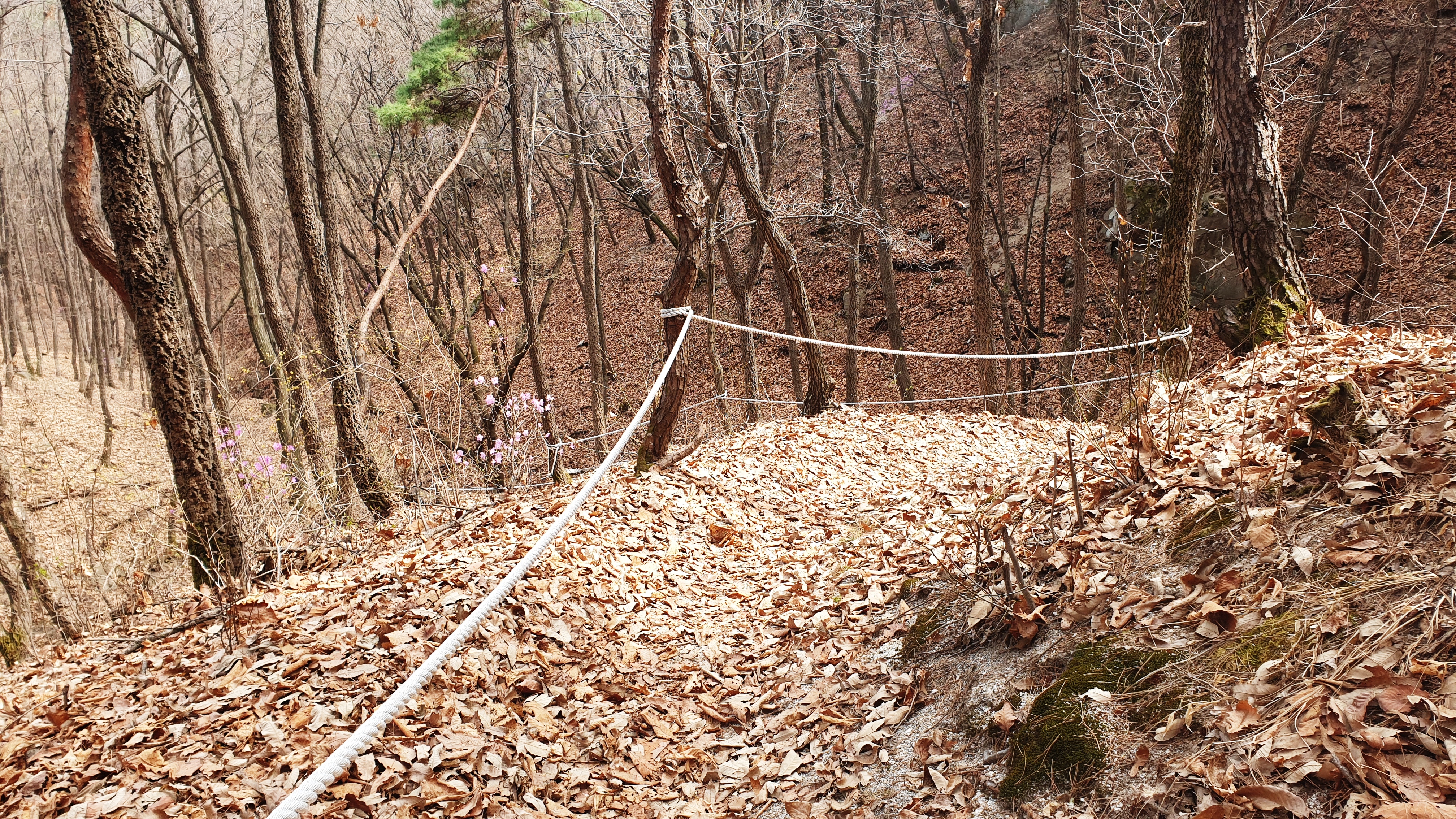 등산로에 로프가 있다면 그럴만한 이유가 있는 것이다. 제법 경사가 있고 미끄럽다.