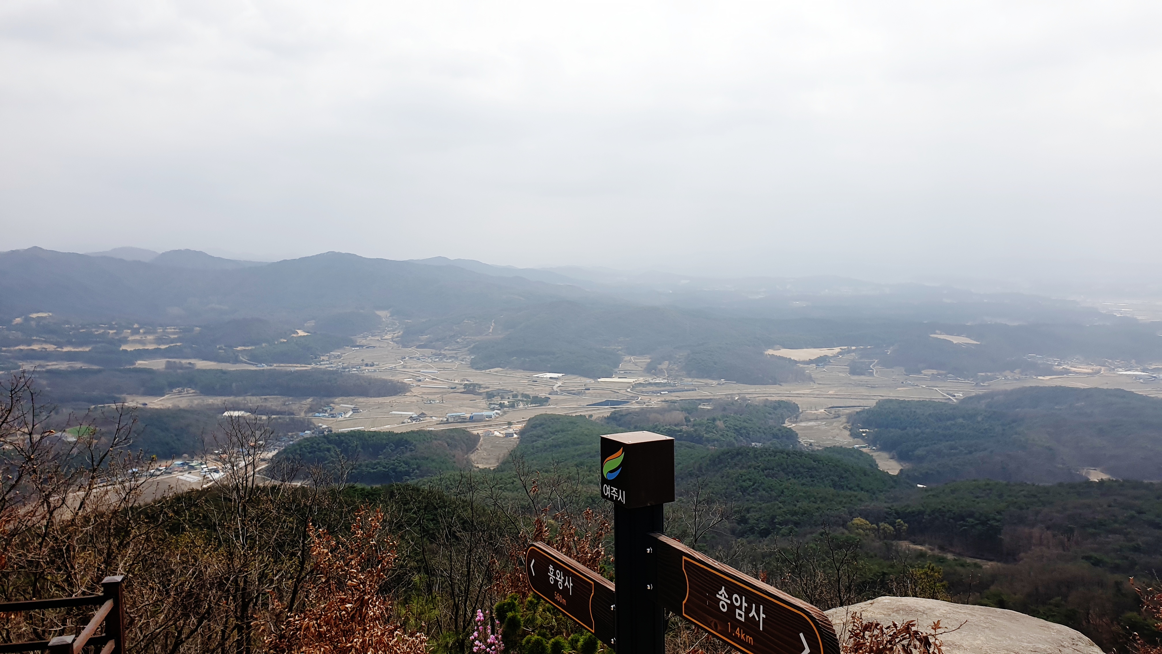 미세먼지가 많아서 가시거리가 좋지 않아서 아쉽긴 하지만 정상에서 시원하게 여주 풍경을 바라 볼 수 있다.