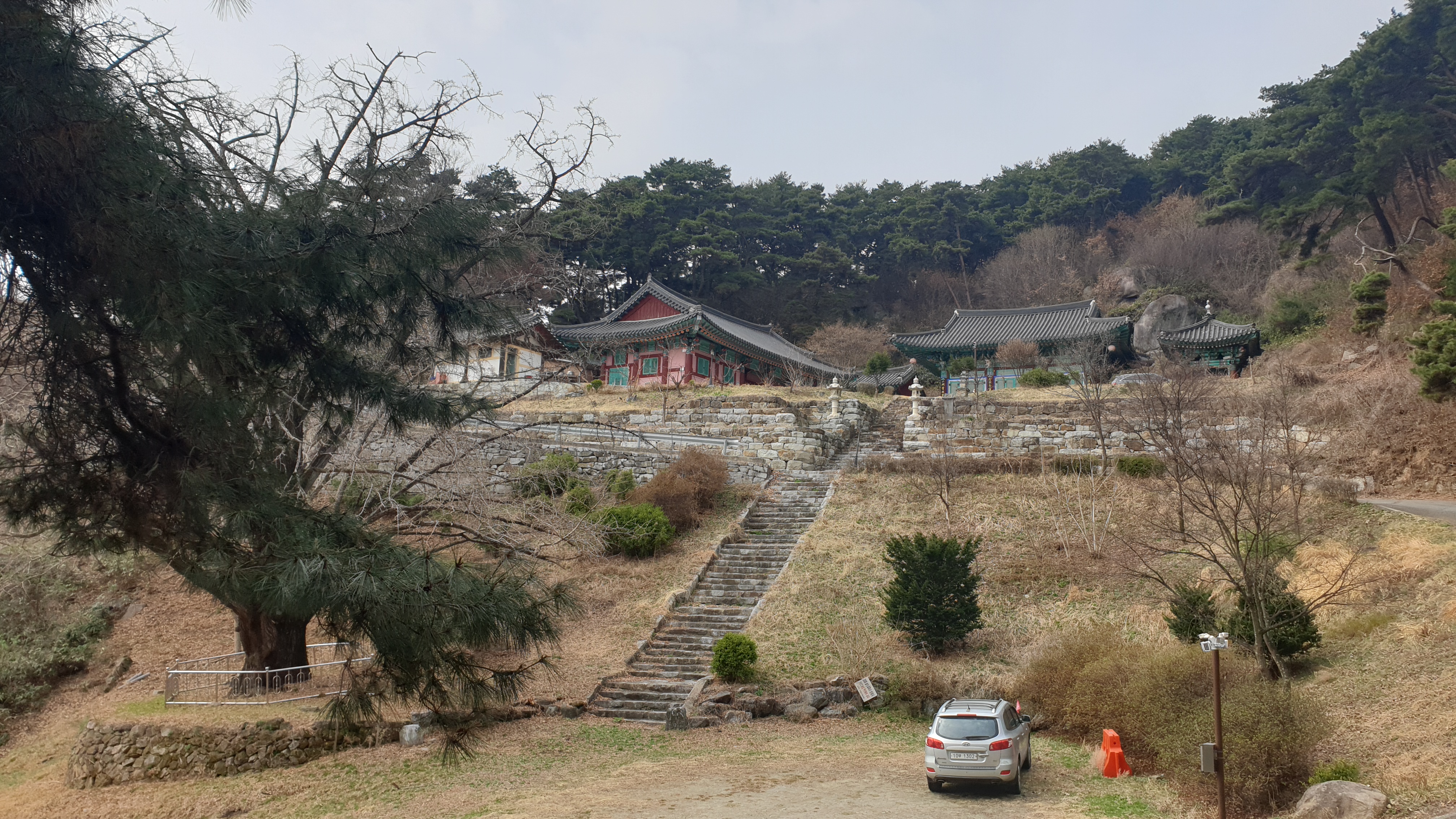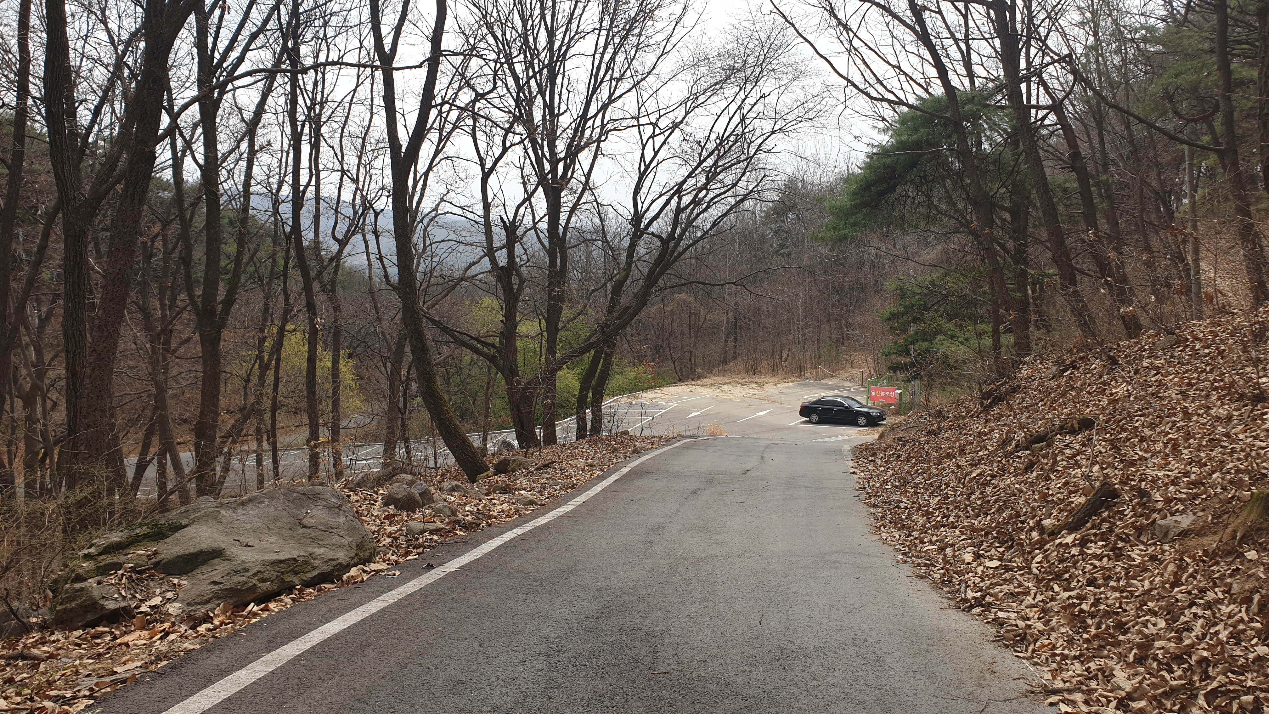 좁은 산길을 달려 올라가니 넓은 주차장이 나왔다. 차를 세우고 올라가는데 제법 경사가 있다.