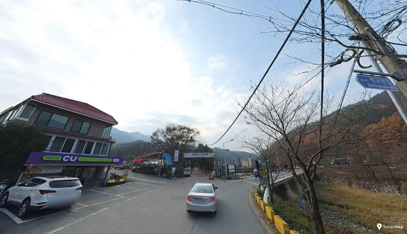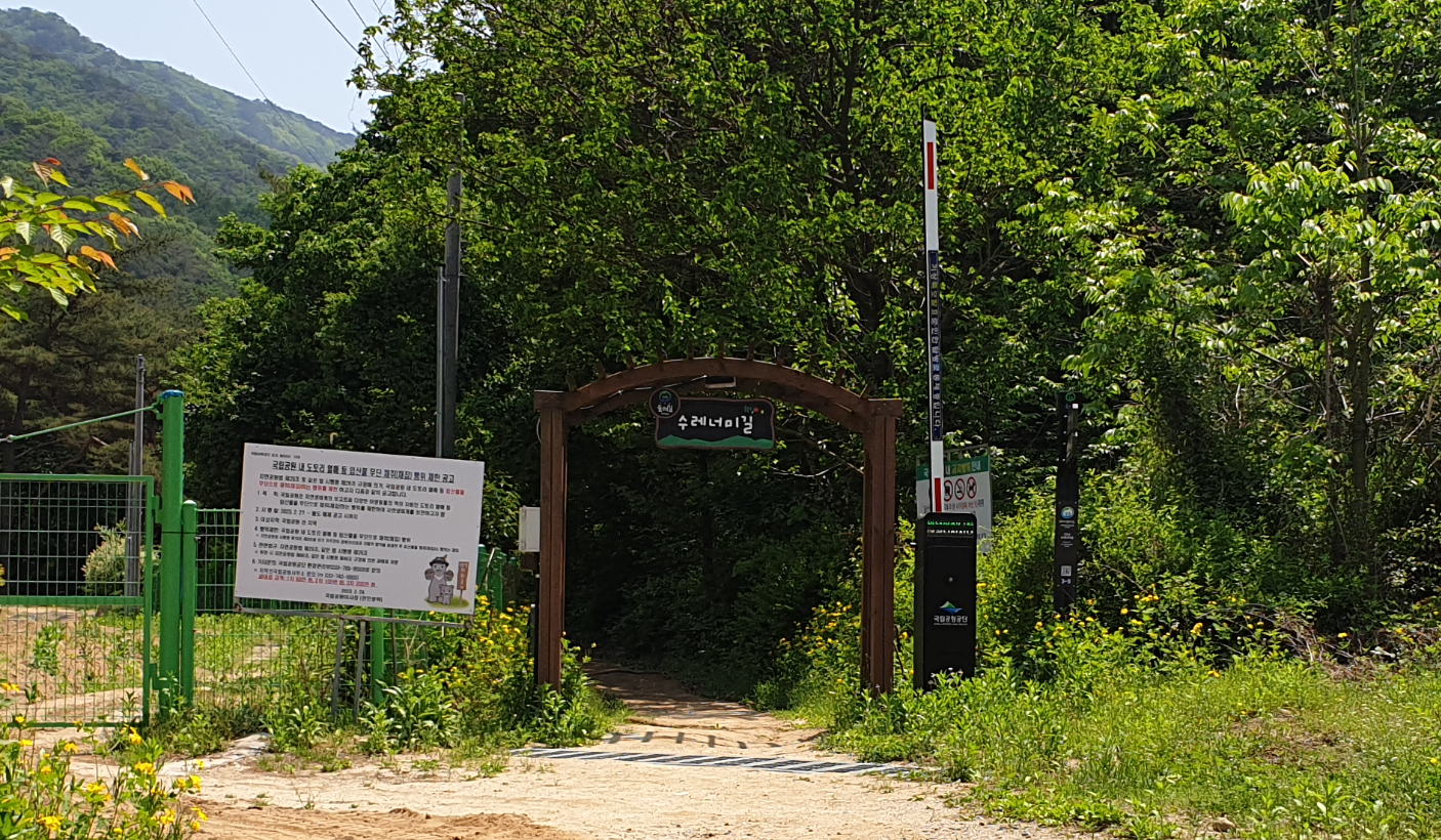 수레너미길 3코스의 시작점은 본래 치악산 관리사무소 주변 주차장에서 시작합니다. 그런데 저는 수레너미길 입구에서 출발하기로 했는데 이 길이 찾기가 어렵습니다. 치악산 구룡사가 워낙 유명한지라 보통 구룡사 방향으로 직진할텐데 수레너미길 입구로 가기 위해서는 주차장 가기 전 편의점과 다리가 나오는 삼거리에서 다리를 건너지 않고 직진해야 합니다.