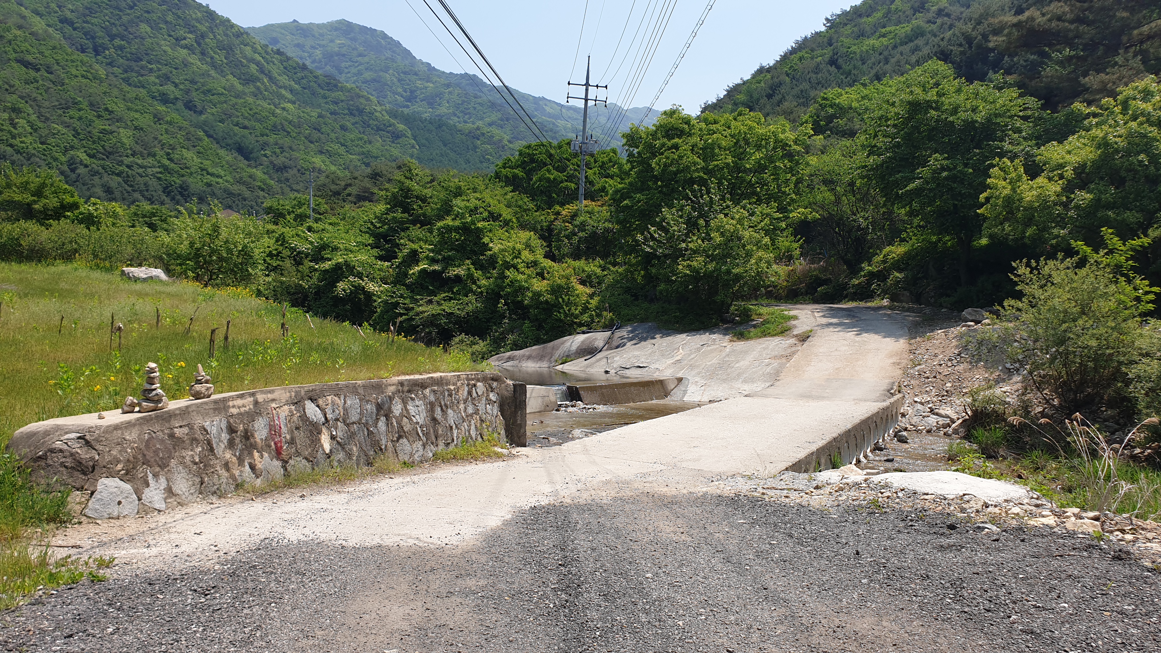 주차를 하고 계곡을 넘어갑니다.