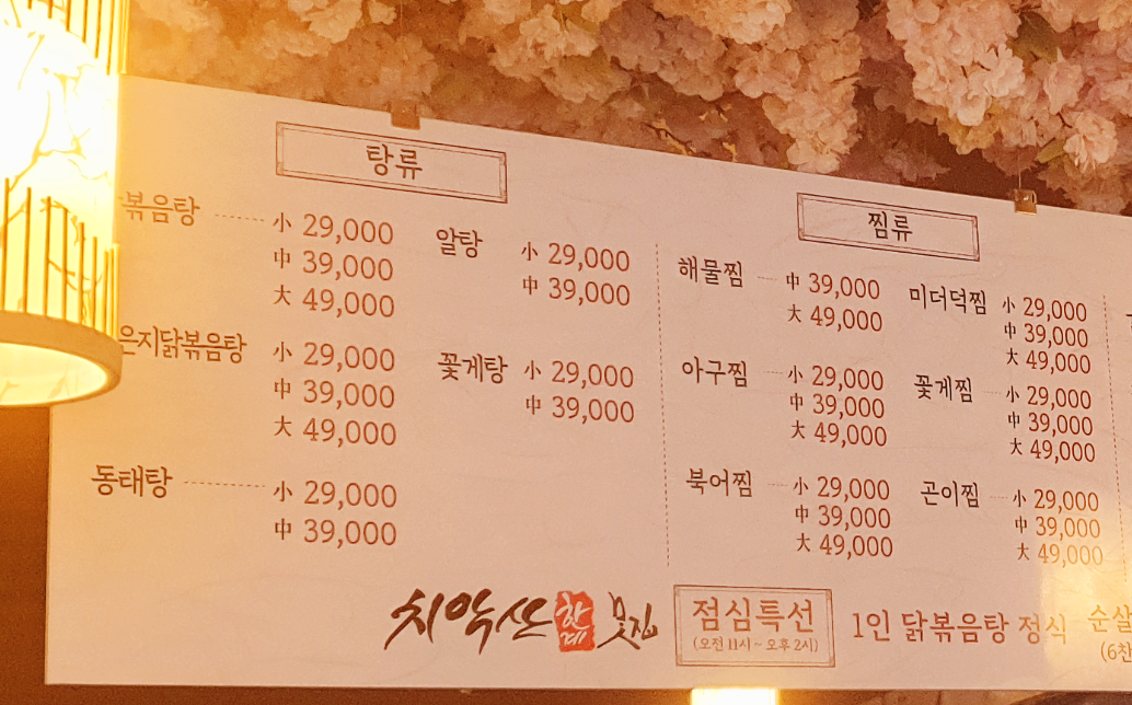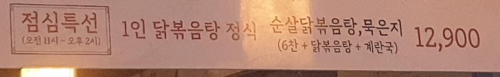 점심특선으로(11시 ~ 14시) 닭볶음탕 정식도(12,900) 있다고 하니 직장인들 가끔 점심시간에 방문해도 좋을 듯 합니다.
