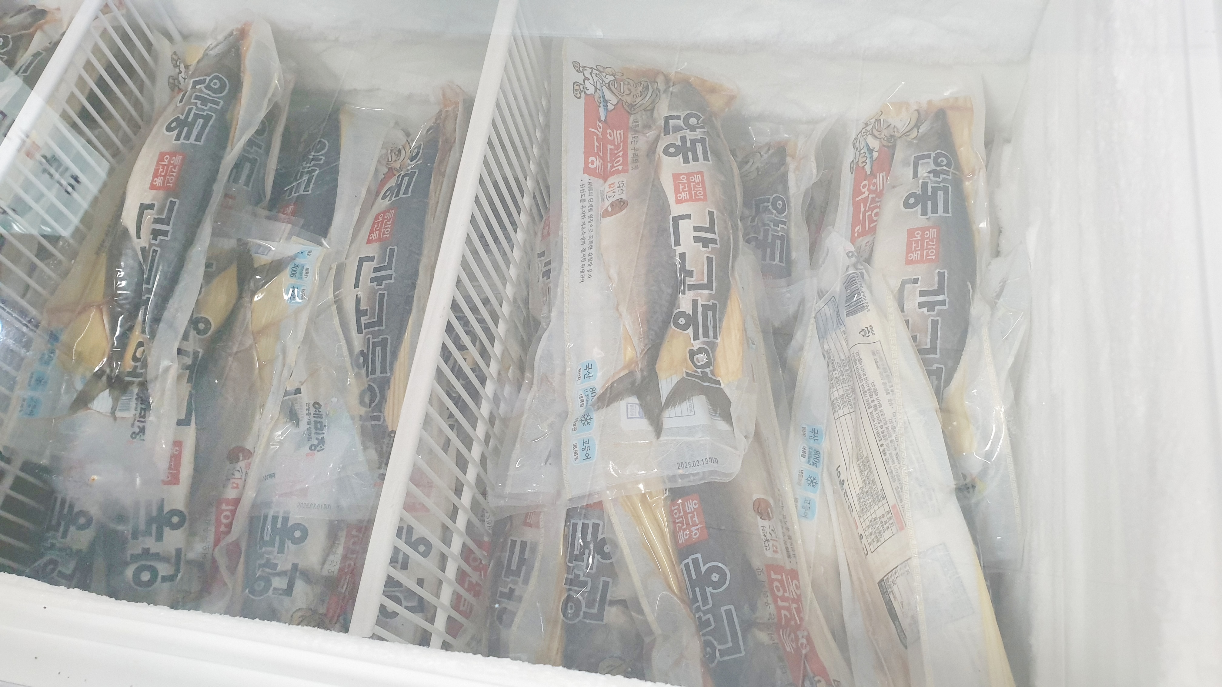 계산대 옆에서 냉동 안동간고등어를 판매하고 있었습니다.